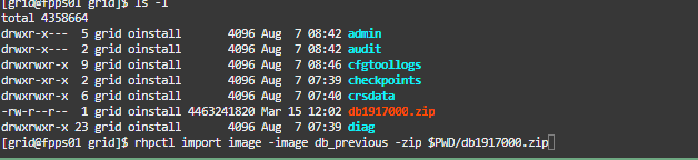 rhpctl import image -image db_previous -zip /u01/app/grid/db1917000.zip