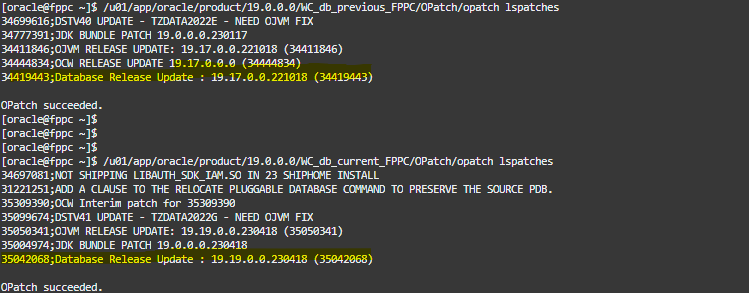 I have an Oracle Database 19.17.0.0 and an Oracle Database 19.19.0.0.