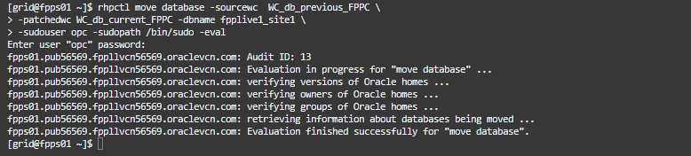 rhpctl move database -sourcewc WC_db_previous_FPPC \