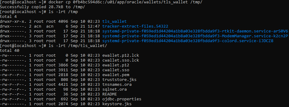 docker cp 0fb4bc594d6c:/u01/app/oracle/wallets/tls_wallet /tmp/