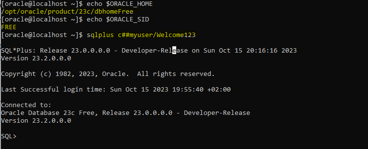 So, I can change my ORACLE_SID environment and set one of them (FREE1 or FREE2) and I will connect to the corresponding instance, the problem with that is that RAC is a High Availability Architecture and I’m not using it, if the instance is not available for whatever reason my connection will fail.