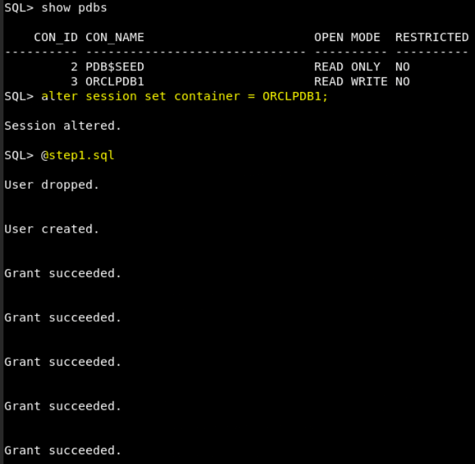 The first script will create the TRANSACTIONS user schema with the require privileges