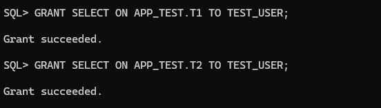 GRANT SELECT ON APP_TEST.T1 TO TEST_USER;