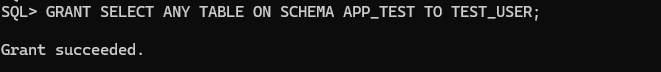 GRANT SELECT ANY TABLE ON SCHEMA APP_TEST TO TEST_USER;
