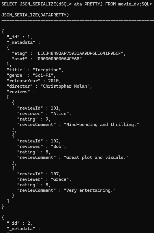SELECT JSON_SERIALIZE(data PRETTY) FROM movie_dv;