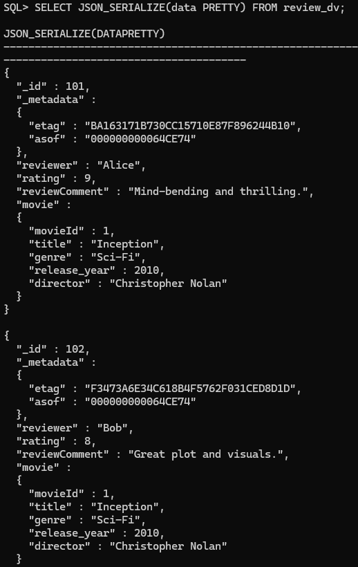 CREATE OR REPLACE JSON RELATIONAL DUALITY VIEW movie_dv AS