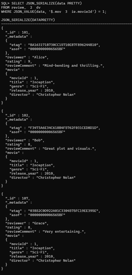WHERE JSON_VALUE(data, '$.movie.movieId') = 1;