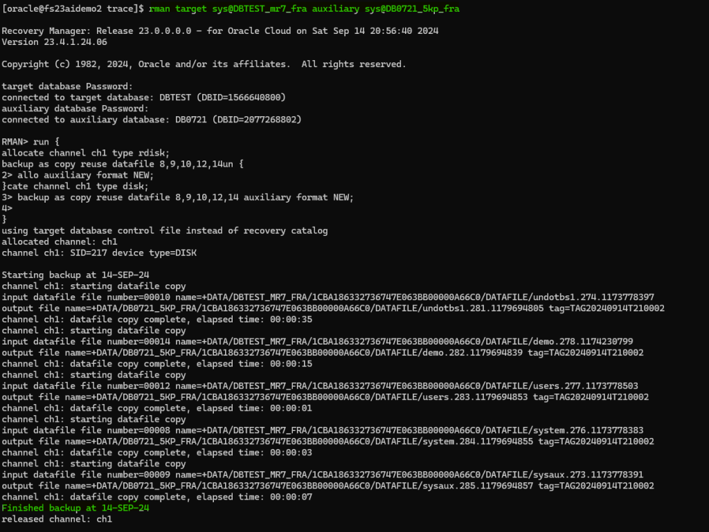 backup as copy reuse datafile 8,9,10,12,14 auxiliary format NEW;