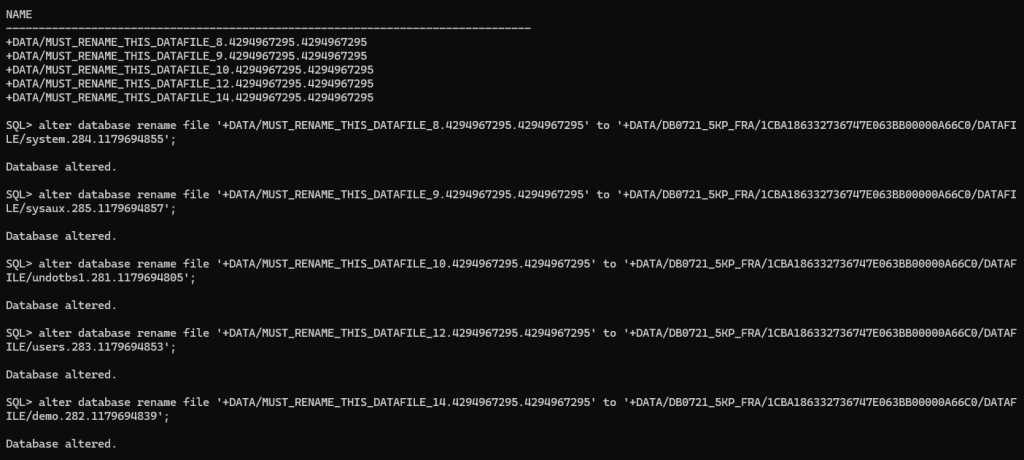 alter database rename file '+DATA/MUST_RENAME_THIS_DATAFILE_8.4294967295.4294967295' to '+DATA/DB0721_5KP_FRA/1CBA186332736747E063BB00000A66C0/DATAFILE/system.284.1179694855';