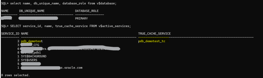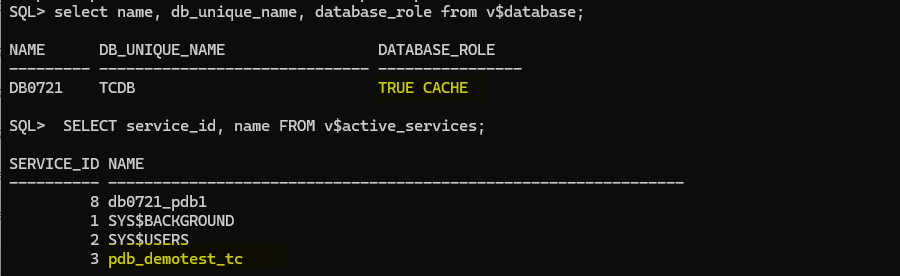 SELECT service_id, name, true_cache_service FROM v$active_services WHERE name='primary_db_service_name';