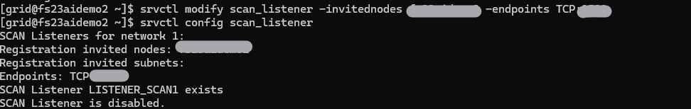 srvctl modify scan_listener -invitednodes true_cache_host -endpoints TCP:port