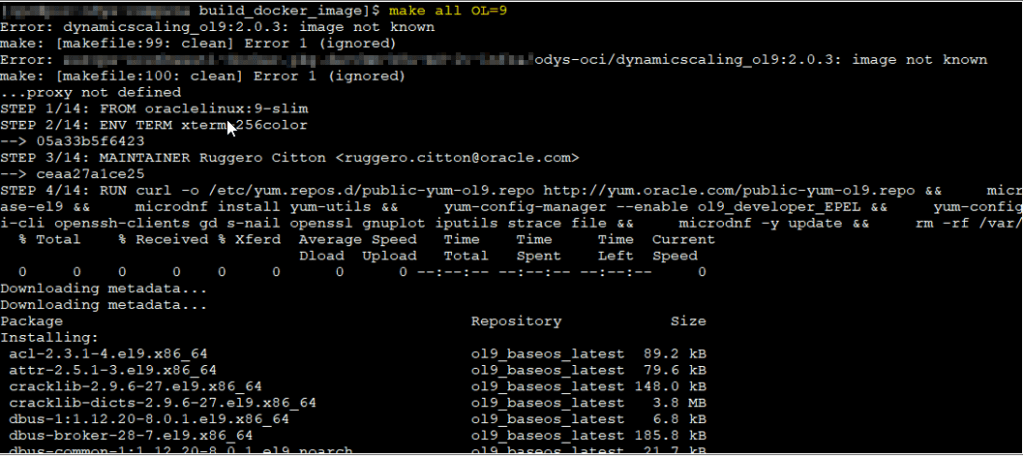 oraclelinux:9-slimimage from Oracle’s container registry. - Installs required packages.