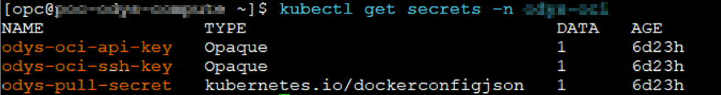- odys-oci-ssh-key: Contains the SSH key used to connect to VM Cluster nodes (usually via