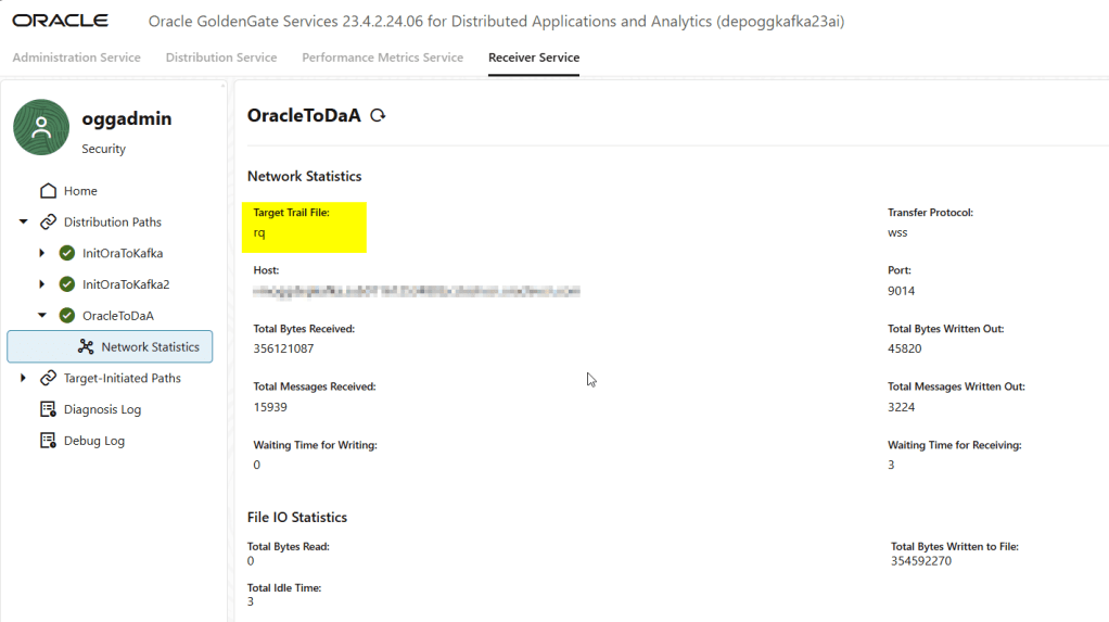 The Receiver Service is the landing zone on the target deployment. It accepts inbound connections, authenticates the source, receives the trail data, and writes it into local trails for Replicat to consume.