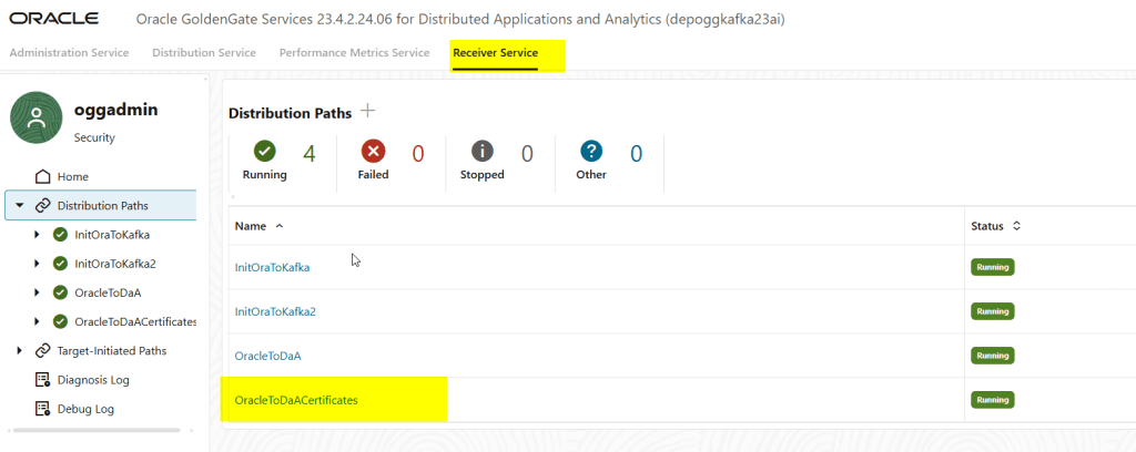 And in the target deployment, I am able to see it in the receiver service:
