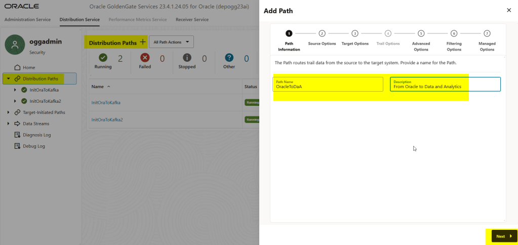 This time the story is different. I want to show how to capture data from an Oracle Database using GoldenGate for Oracle, send the trail files to an Oracle GoldenGate for Big Data/Data and Analytics deployment, and then replicate that data onward. But instead of focusing on Extract and Replicat, this post is entirely about how to connect two GoldenGate Microservices deployments securely.