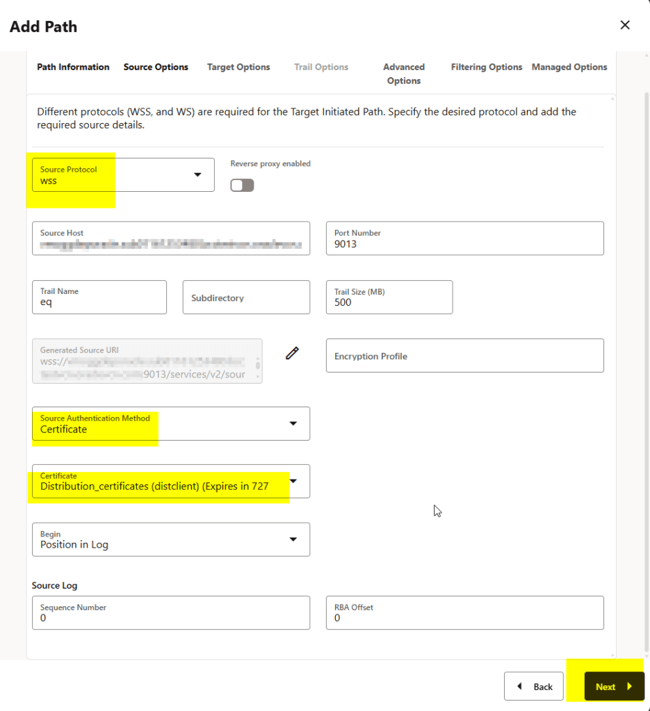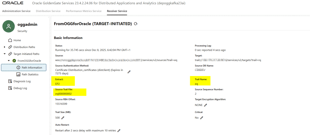Here’s a high-level walkthrough of how you configure a Target-Initiated Path in GoldenGate (23/26ai) through the deployment console: